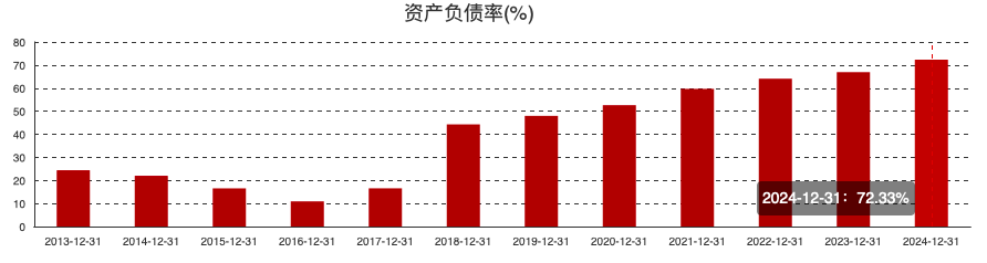 债务方面,往期财报显示,帝欧家居资产负债率持续攀高,已从2017年16.57%至飙升至2024年的72.33%。